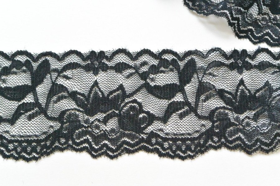Elastisk spets. Svart. 5,5 cm bred.