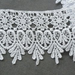 Vacker vit spets. 70 mm bred. 76% viskos, 24% bomull.