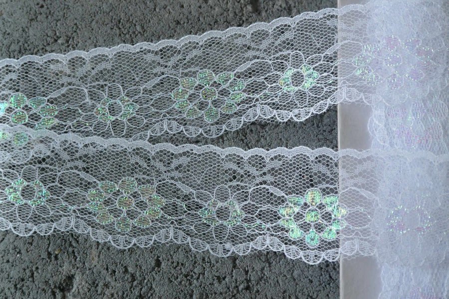 Spets i syntet. Vit. 40 mm bred.