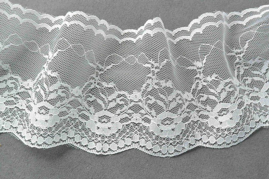 Spets i syntet. Vit. 90 mm bred.