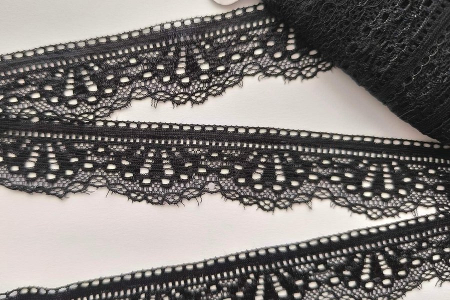 Elastisk spets. Svart. 3 cm bred.