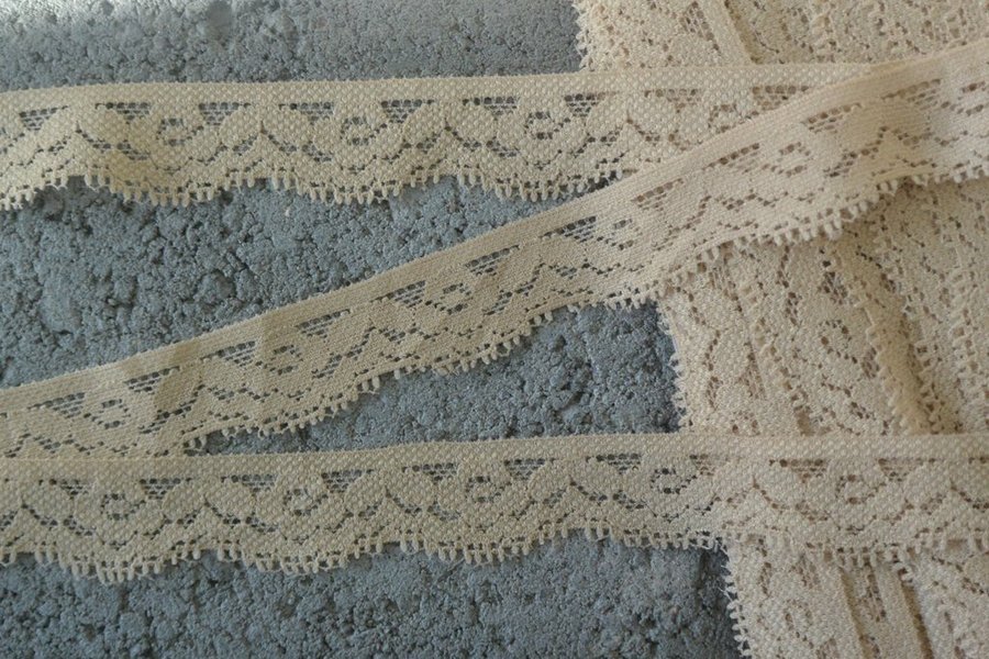 Beige elastisk spets. 2 cm bred.