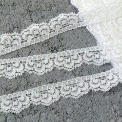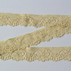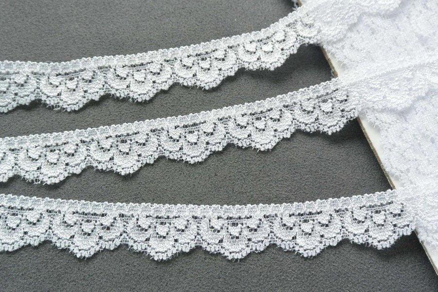 Vit elastisk spets. 1,6 cm bred.