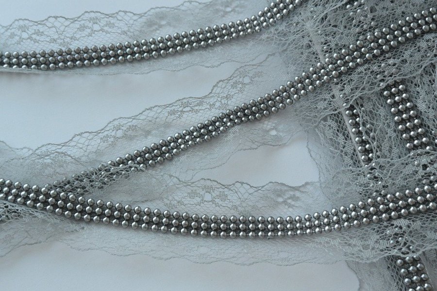 Spets i syntet.Grå. 35 mm bred.