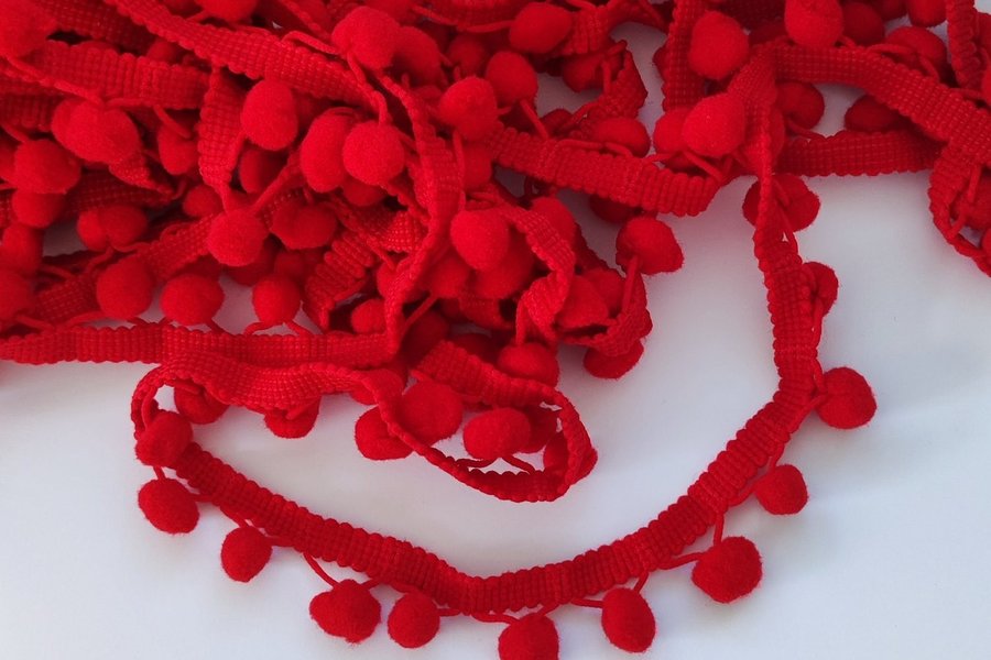 Bollfrans, röd, 100% polyester.