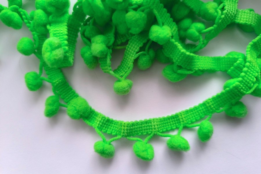 Bollfrans, ljusgrön, 100% polyester.