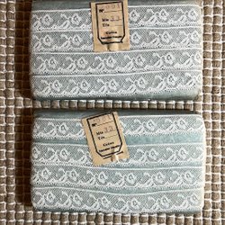 Vit spets, Spetsen har ett mönster med små hål och vågiga kanter.5 meter 1 cm bred