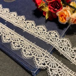 Elastisk Spets ca 247cm, bredd ca 6,2cm, vit