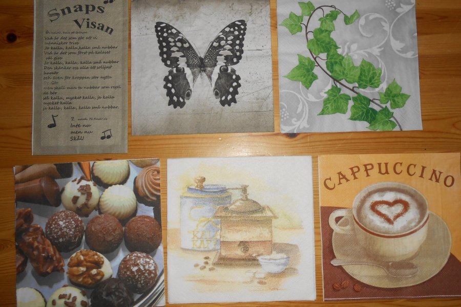 6 servetter till decoupage eller annan hobby
