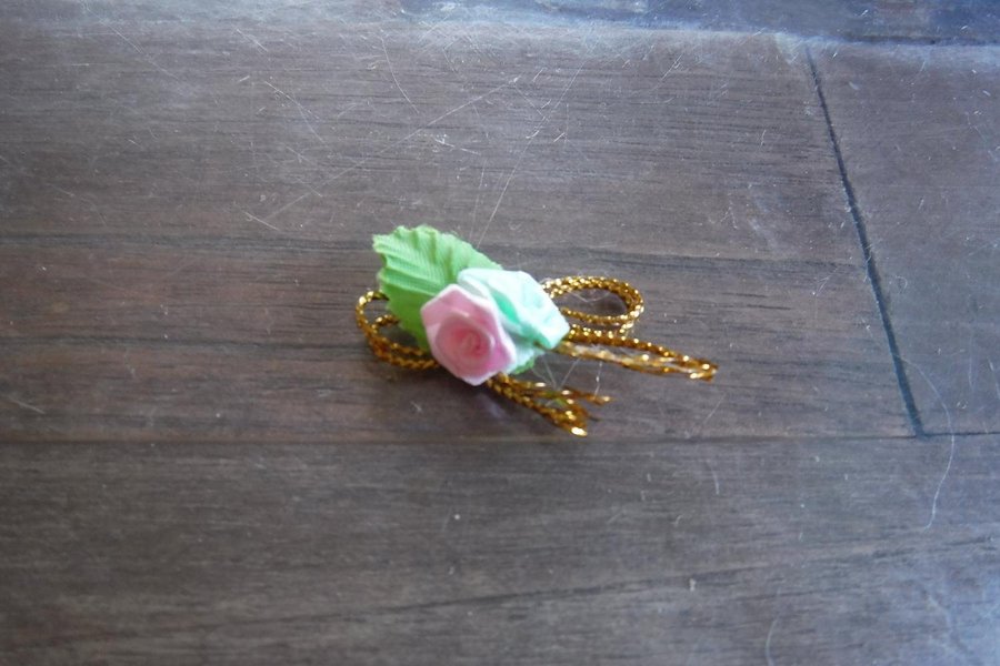 Liten rosett med blommor i tyg