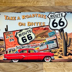 Dekorativ samlarplåt med motiv av en pojke och en gul bil. Perfekt för samlaren eller som en unik inredningsdetalj.