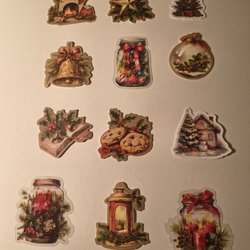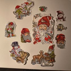 Ett set med blandade små dekorationer till paket kort mm