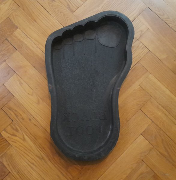 Begagnad i bra skick, färgfläckar finns, ffa på utsidan. Mycket kraftig plast. Text "black foot" på den gjutna plattan. Mått ca 55 cm lång, 4,5 cm djup. Den andra foten finns och kan läggas ut vid intresse.