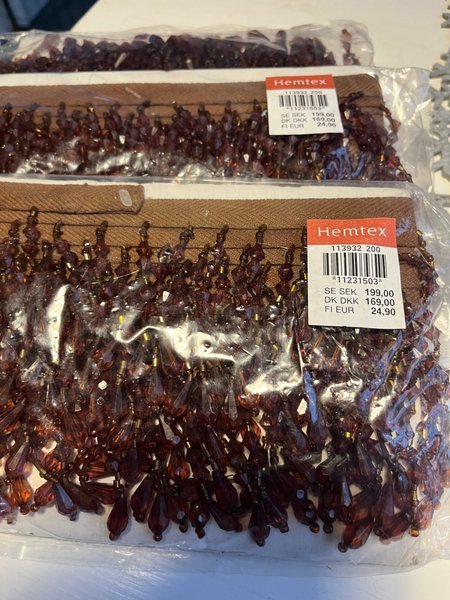 3 oöppnade paket med dekorationsband från Hemtex , är bruna droppar , om jag mätt rätt så är det 150 cm i varje