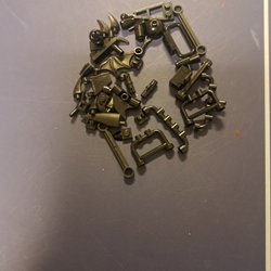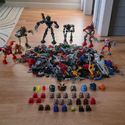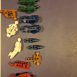 Ett sortiment av Lego Bionicle delar och bitar.