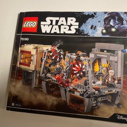 LEGO 75180 Rathtar Escape was a 836 piece Star Wars set with 5 minifigs released in 2017. It features modular freighter sections with a lowering blast door, trapdoor, crawlspace, and a fuse mechanism to release two buildable Rathtar figures, along with minifigures of Han Solo, Chewbacca, Bala-Tik, and two Guavian Security Soldiers.