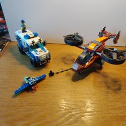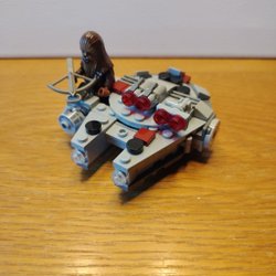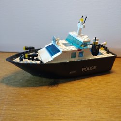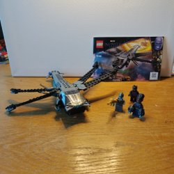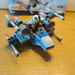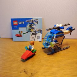 Ett litet Lego tåg i blått och svart.