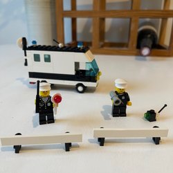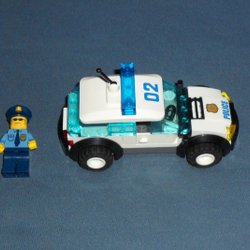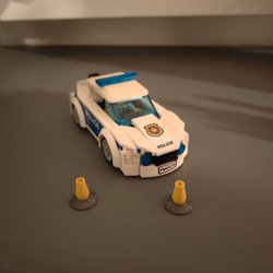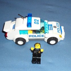Lego polisbil med detaljerad interiör och exteriör. Perfekt för lek eller samling.
