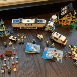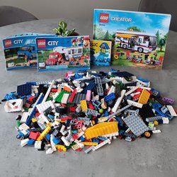 Ett blandat set med Lego fordon. Inkluderar rymdfärja, flygplan, lastbilar, bilar och motorcyklar.
