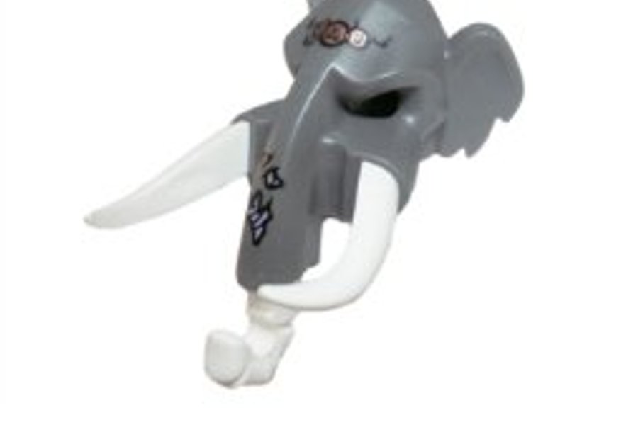Minifigure, Headgear Mask Mammoth with White Rubber Tusks Dark grey