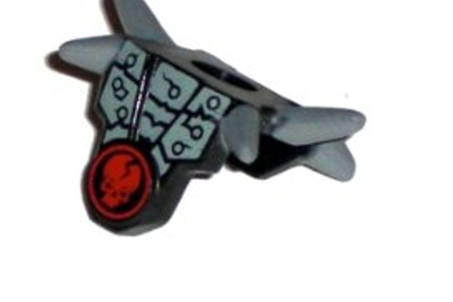 Minifigure Armor Breastplate with Shoulder Spikes Dark Bluish Gray and Red Cracked Skull in Circle Pattern