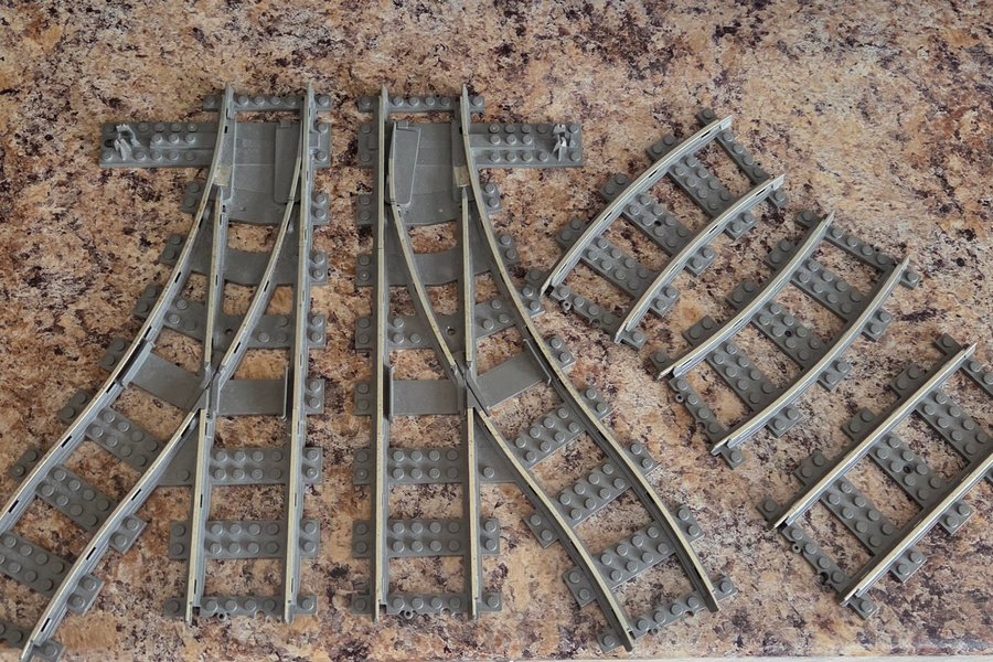 LEGO tågräls delar. Säljes i befintligt skick.