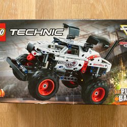 Säljer en LEGO Technic Monster Jam Monster Mutt Dalmatian, setnummer 42150. Denna modell har en pull-back funktion.