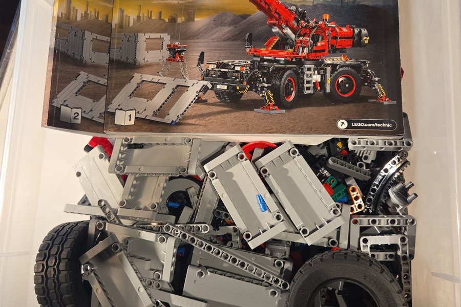 Lego Technic set 42082 Terrängkran. Inkluderar instruktionsböcker 1 och 2. Säljes i delar.