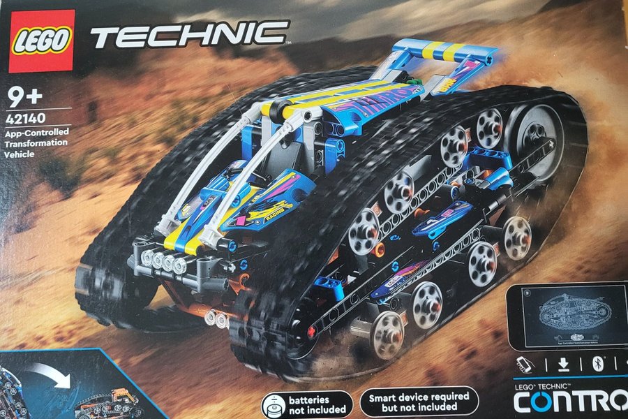 LEGO Technic 42140 App-styrd Transformationsfordon. Byggsatsen är avsedd för åldrarna 9+. Observera att batterier och smart enhet inte ingår.