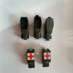 Modell av militärfordon. Lastbil med och utan kapell, totalt 8 st . Fordonen är i grön färg. I bra skick, kan fattas någon plastdetalj, säljes i befintligt skick. Fråga innan för att undvika missförstånd.