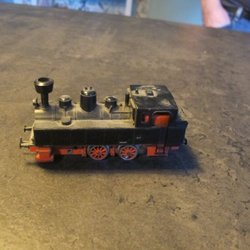 Ett modell lok i svart och rött. Perfekt för samlare eller som en del av en modelljärnväg.
