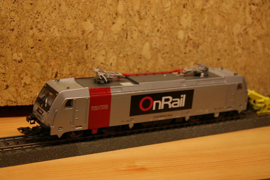 Märklin 185 TRAXX. OnRail. Begagnat lok i gott skick som är ommålat och dekalerat.