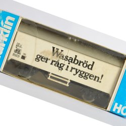 En Märklin DB godsvagn i originalkartong. Vagnen är en "Low-sided bogie goods truck, eightwheeled" modell. Perfekt för Märklin tågsamlingen. Telex koppel