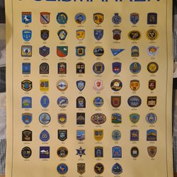 Äkta äldre metallmärke med emalj, bevarat i sitt originalkuvert.