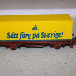Kartongen är lagad i båda gavlarna men ser bra ut.