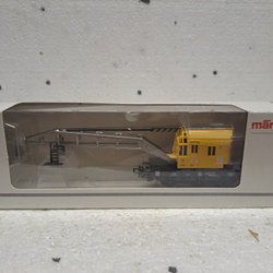 Detta är en Märklin 4671 kranvagn, en modelljärnvägsvagn.