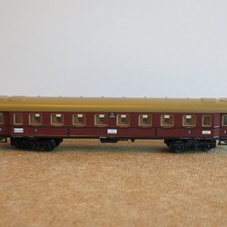 En gammal Märklin modelljärnvägsvagn. Det finns en sko på vagnen som troligen är ström för belysning. Jag har inte kvar någon räls som jag kan prova på. Märkt med 3291. Perfekt för din modelljärnväg.
