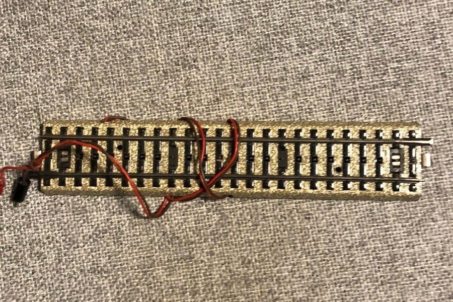 Räls för modelljärnväg med strömanslutning. Perfekt för att bygga ut din modelljärnväg.