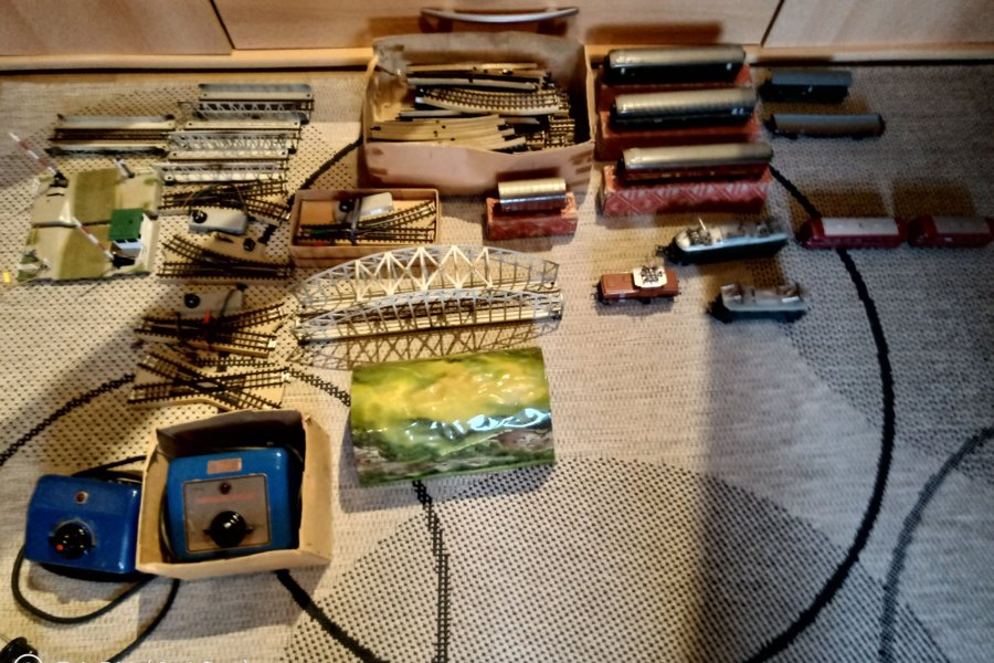Tåg och vagnar, växlar, 2 transformatorer, skenor enl bild