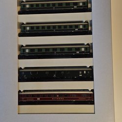 Detta paket innehåller fyra Fleischmann modelltågsvagnar. Modellnumren är 867712, 862901, 878675 A och 878632A. De är i väldigt fint begagnat skick