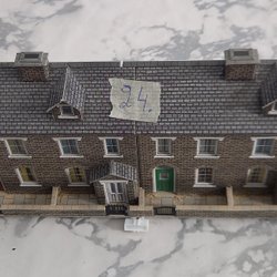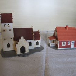 Ett charmigt modellhus, perfekt för samlare eller som en del av en modelljärnväg. Detaljerad design med grön tak och tegelväggar.
