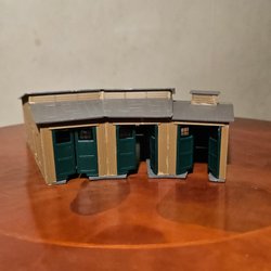 Ett hemtrevligt bostadshus som passar perfekt i en lugn villamiljö på anläggningen. Den gula fasaden med brunvita detaljer, det branta taket och den lilla trädgården med staket skapar en genuin 60–70-talskänsla. Modellen är detaljrik med balkong, fönsterluckor och skorsten – ett utmärkt inslag för att ge liv åt ett bostadsområde eller en liten bymiljö i H0-skala