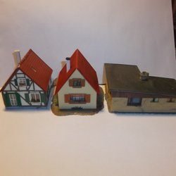 Ett set med modellhus i olika stilar och färger. Perfekt för modelljärnvägen eller som dekoration.
