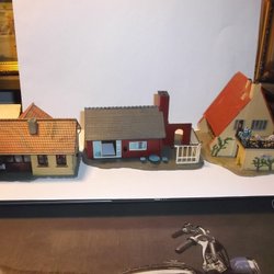 Ett charmigt modellhus med rött tak och liten trädgård. Perfekt för modelljärnvägen eller som dekoration. Hittar ingen märkning men Google säger Faller. Behöver lite omvårdnad som syns på bilderna.