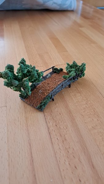Modellbro med detaljerade träd och marktextur. Perfekt för dioramor eller modelljärnvägar. Från 1950-60 tal.