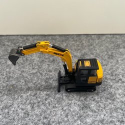Grävmaskin är klassiskt gul/vit och tillverkad av metall med plastdetaljer. Har alltid förvarats i Vitrinskåp, aldrig framtagen för annat än för fotograferingen.
