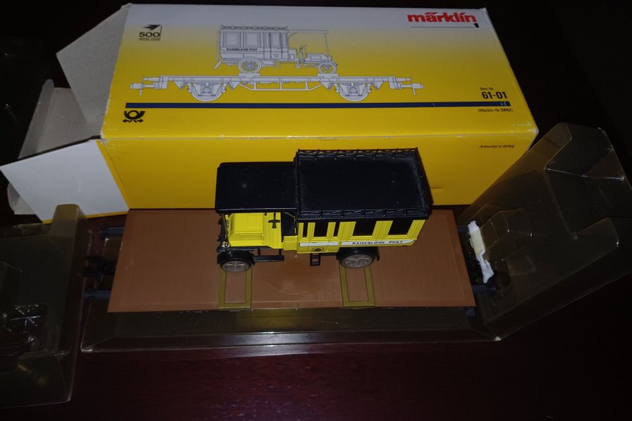 Märklin tågvagn, modell 61-01 (Märklin-Nr. 5842), märkt "Kaiserliche Post". Tillverkad i Tyskland.