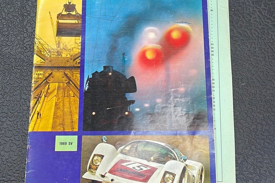 Märklin katalog från 1969 med bilder på tåg, bilar och kranar. Katalogen är på svenska.