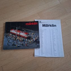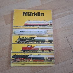 Katalog från Märklin från 1975 med modelljärnvägar och tillbehör.