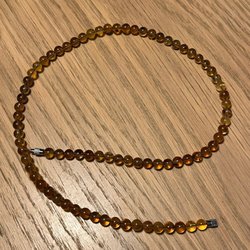 Jättefint spets/torn i ljus honungskalcit. Det är väldigt fin transparens i denna kristall och med många skikt och ”regnbågar”. Vikt cirka 157 gram.